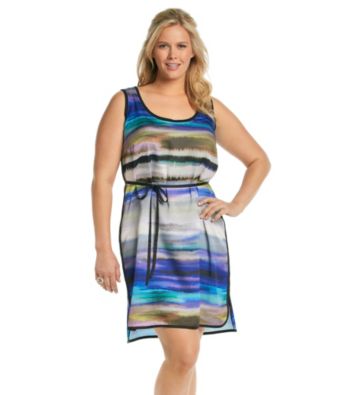 DKNY JEANS Plus Size Printed Tank Dress With Belt Women's